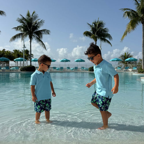 Our boys’ swim shorts combine a secured elasticated waist and braided drawcord with a super-soft and durable fabric, making them comfortable enough for long, fun days at the beach, as well as some serious splashing at the pool. They are UPF50+ and resistant to both chlorine and saltwater.