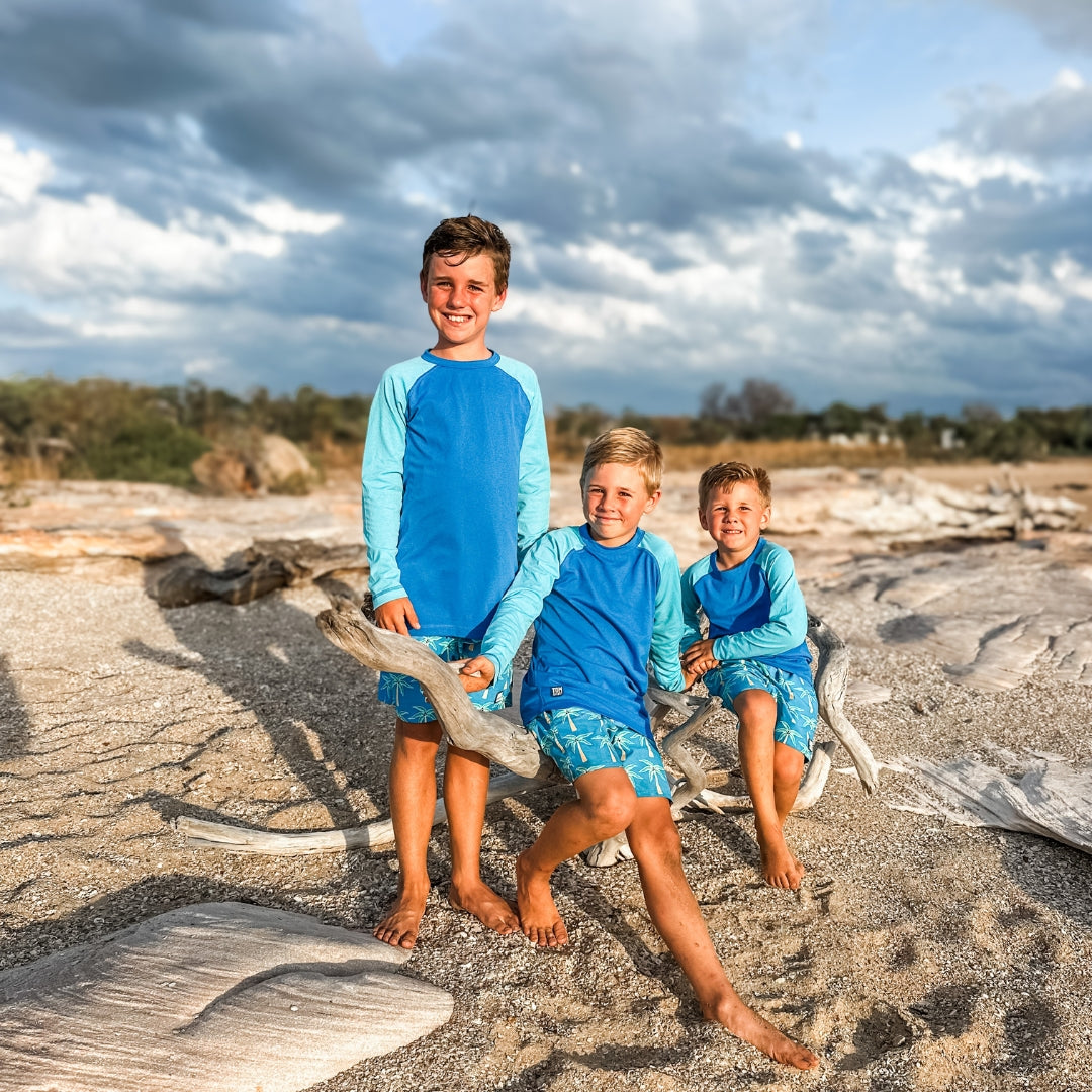 Our rash tops are made with an ultra-durable, ARPANSA approved UPF50+ sun protective fabric that's resistant to both salt and chlorine, so they keep their shape summer after summer!