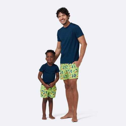 Swim times are much more fun when you match up! This set of father-and-son swimmers will bring a big smile to their faces when they hit the beach or pool. With a bold Gecko print and striking shades of blue and orange, they’re the perfect sunny-day shorts.