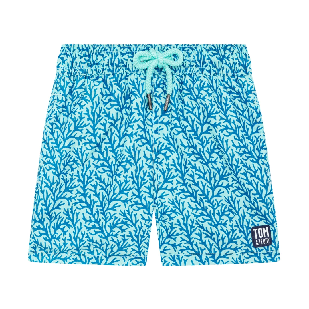 Our Aqua & Blue Coral swim shorts are a new colourway of our popular coral design, featuring a detailed coral motif across calming aqua and ocean-blue tones. Perfect for sun-filled holidays, pool days and coastal adventures.