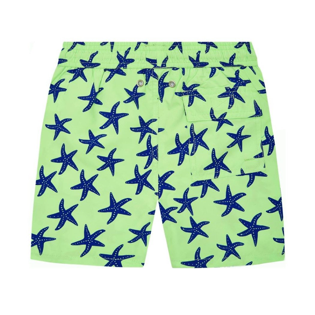 Classic style Tom & Teddies with an elasticated waist, these zingy green and blue swim shorts feature our new and bold Starfish print from the Aquatic Collection. Here are trunks that are destined for long sunny beach days, and they’ll definitely perk-up any summer vacation kit with a blast of bright colour! Team them with a navy tee and wear them all day long, in or out of the water.